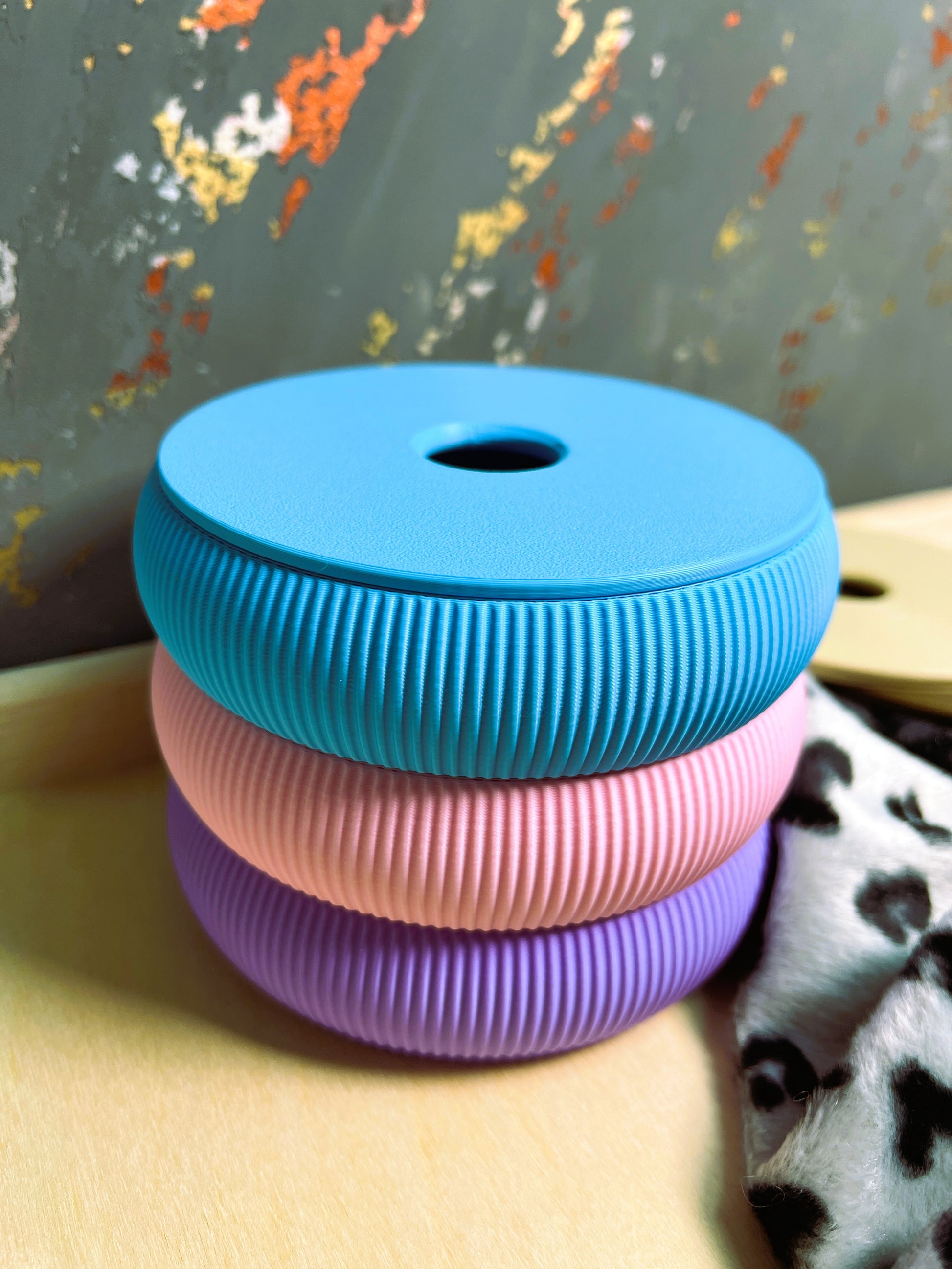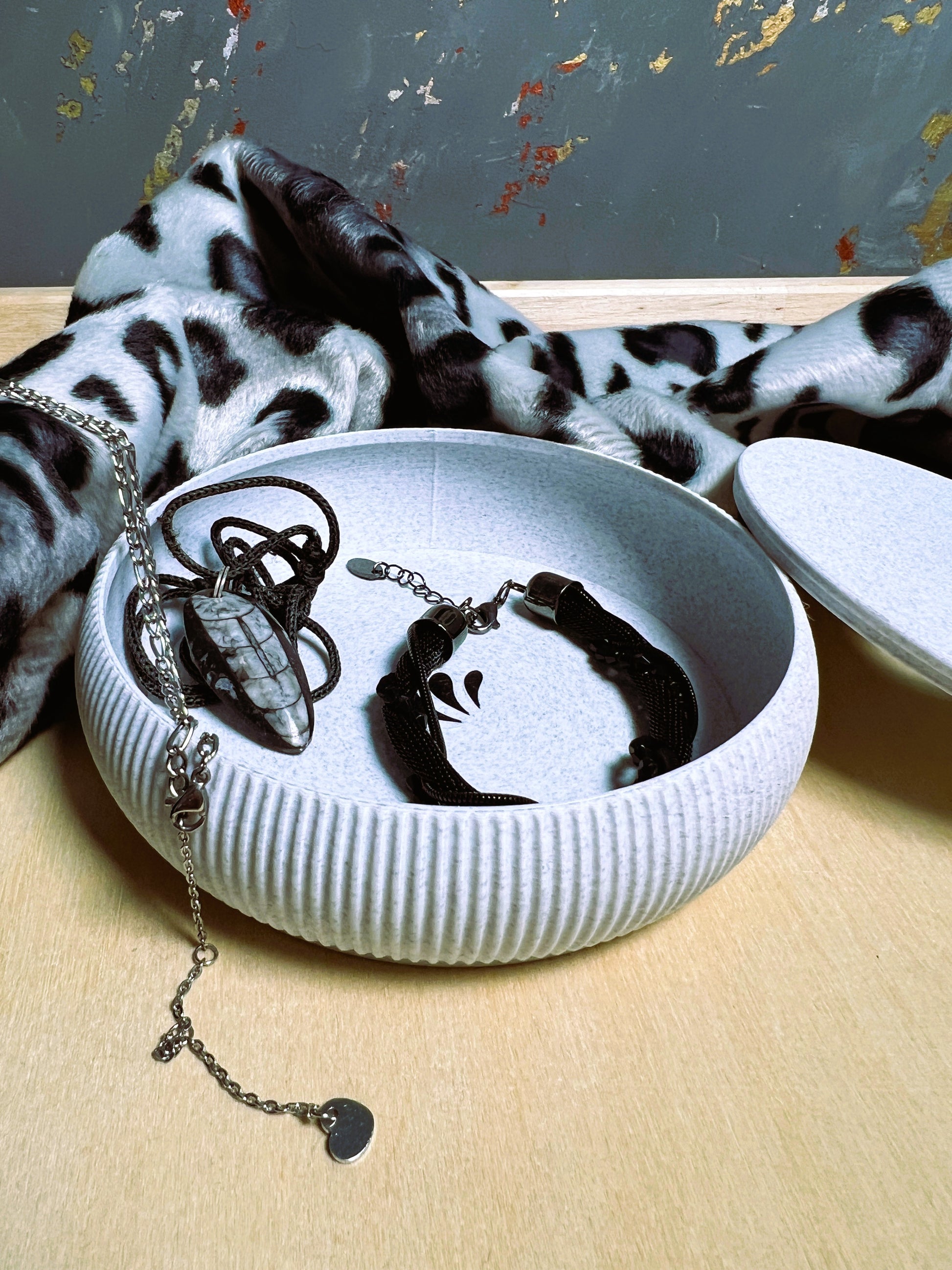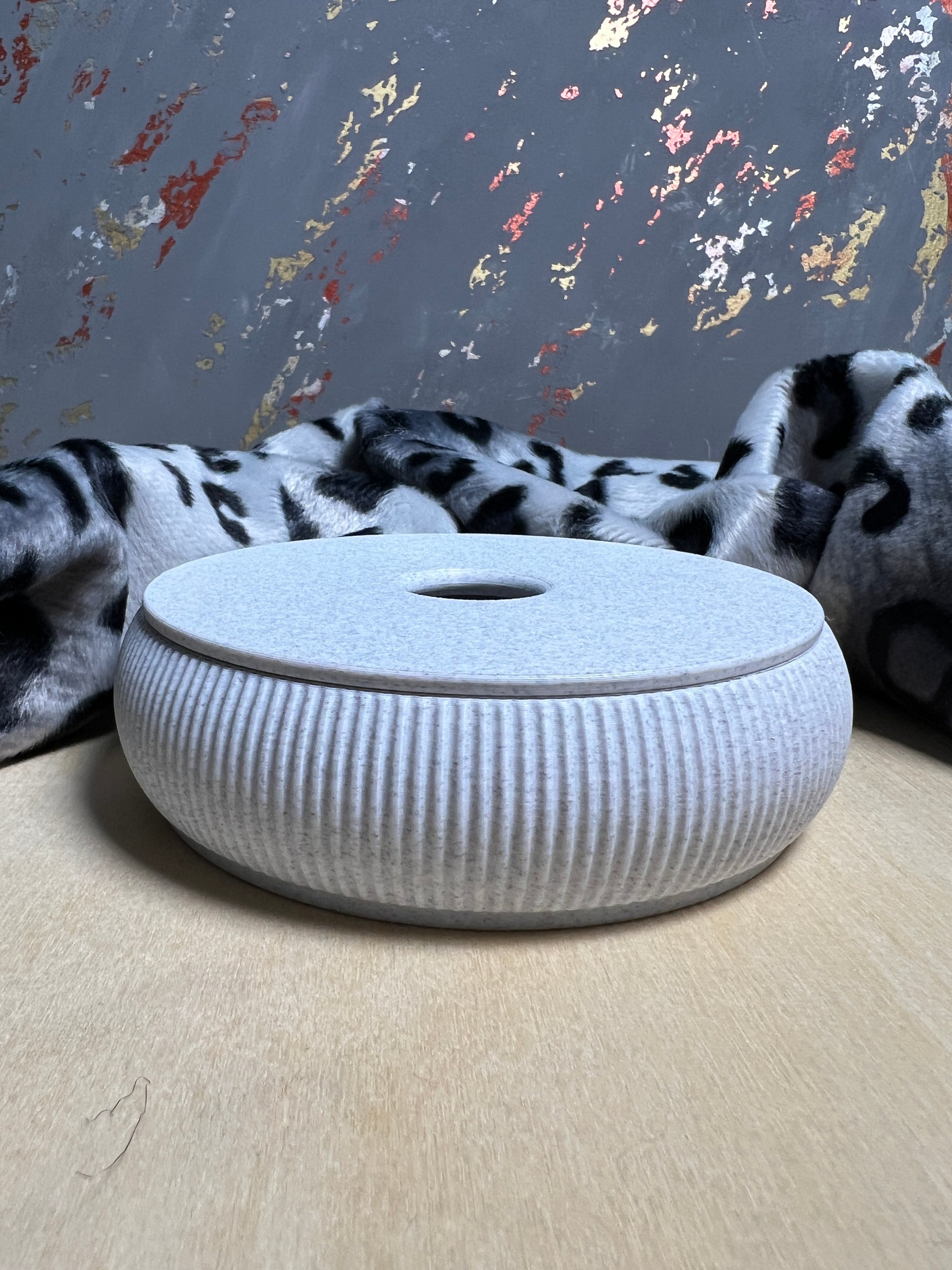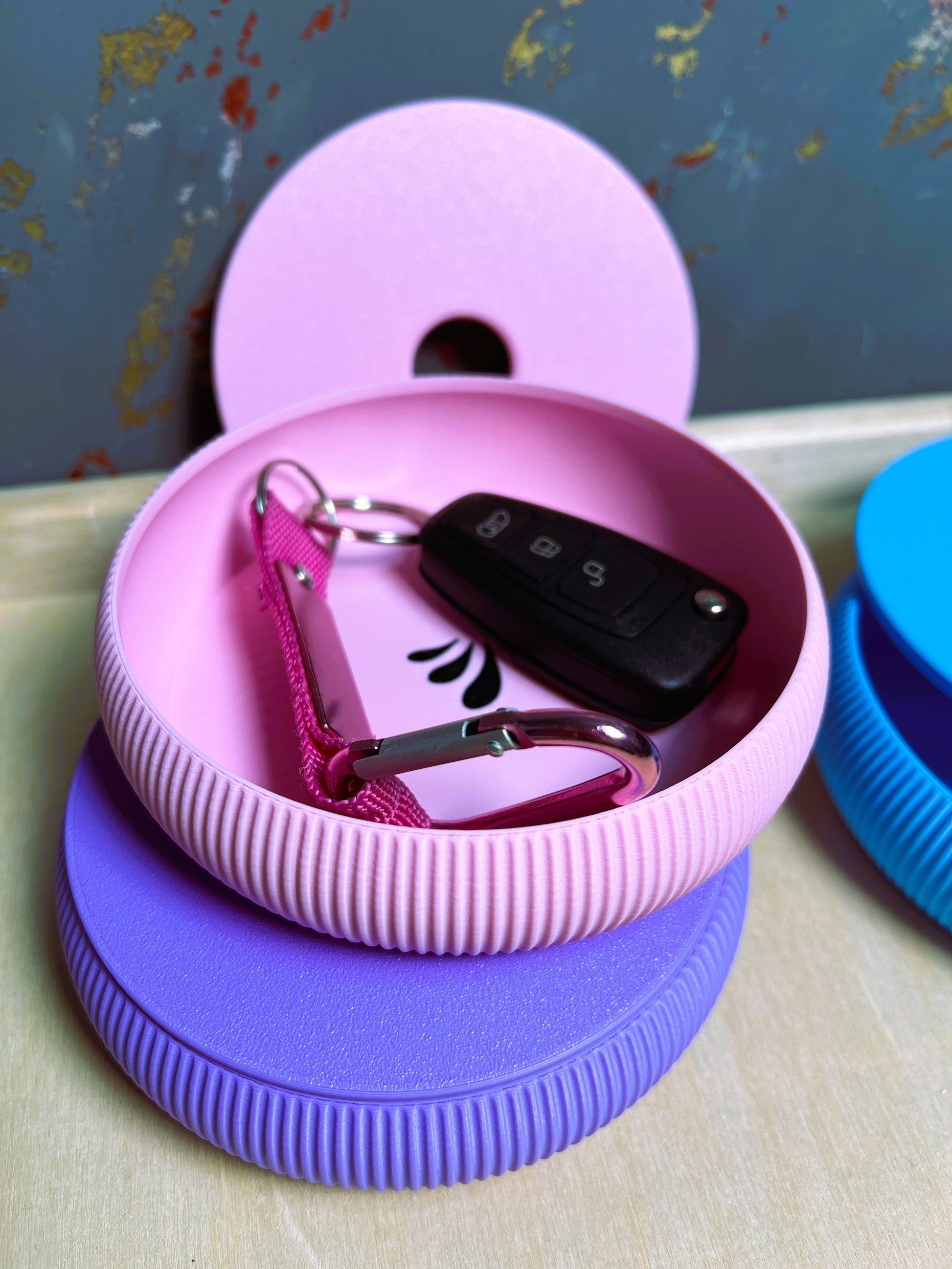 Liebevoll gestaltete Schale in minimalistischem Design aus umweltfreundlichem PLA. Mit ihrer modernen Form, dem gerillten Rand und dem farbigen Deckel ist sie nicht nur praktisch, sondern auch ein echter Hingucker – ob auf dem Schminktisch, im Flur oder im Büro.